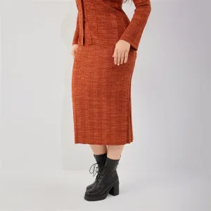 Women Winter Clothes 2026 Plus Size Midi Skirt Fashion Style Dense Vertical Knit Orange Textured Slimming Elastic Fit Fits