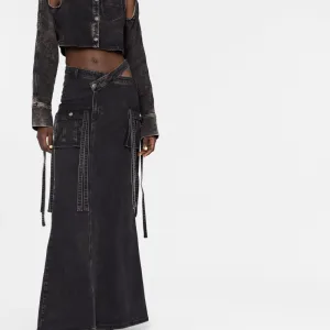 Women’s Clothing Irregular Openwork Waist Long Split Jean Skirt Long Jean Skirt With Big Pockets Cargo Skirts