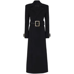 New Material Women’s Autumn and Winter Fashion Simple Belted Black Extended Woolen Coat