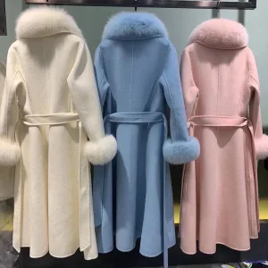 New Arrival Elegant Cashmere Long Coat Winter Wool Coats Women With Real Fox Fur Collar