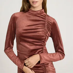 Spandex/Polyester Velvet-Look Mock Neck Long Sleeve High Waist Slim Fit Formal Mini Dress