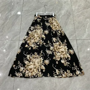 Top Quality New Long Skirt 2025 Autumn Style Women Vintage Floral Print High Waist Long Maxi Black Party Evening Skirt XXL Size