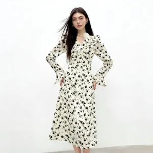 Unisex Fashion Beautiful Ruffled Floral Dress Spring New Casual V-neck Flared Sleeve Short Skirt