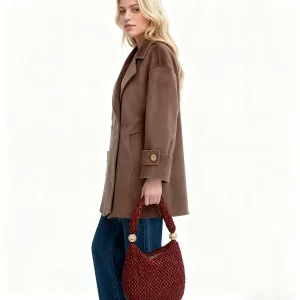 Women’s Handmade 100% Wool Winter Warm Coat Long Length with Button Decorated Polyester Lining Casual Outerwear