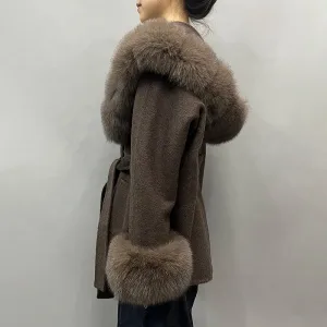 Big Hood Wool and Cashmere Coat Women Luxury Fox Fur Trim Wool Coats for Winter