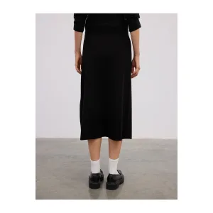 Comfortable Wool Blend A-Line Midi Skirt with V-neck Natural Waist Unlined
