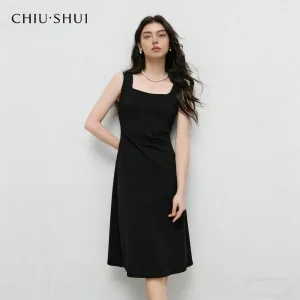 Elegant Black Casual Dress Age-Reducing Skirt Summer New Fashion Versatile Mid-length Dress for Women