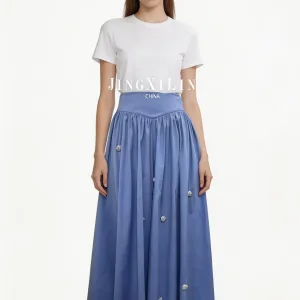 Crystal Bead Embellished Draped Skirt Soft Gathers Wide Flared Hem for Women