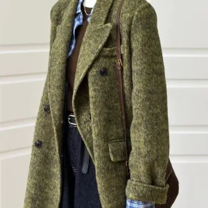 Korean Style Double-Sided Waterproof Woolen Coat Women Spring New Style Thick Scarf Collar Breathable Loose Casual Cotton Lining